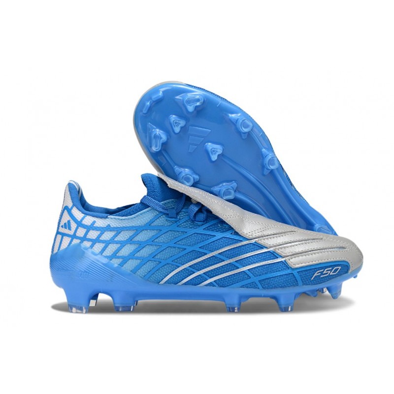Zapatillas de Futbol Adidas F50 Spider Elite FG Azulbird Plateado Metálico Ftw Blanco